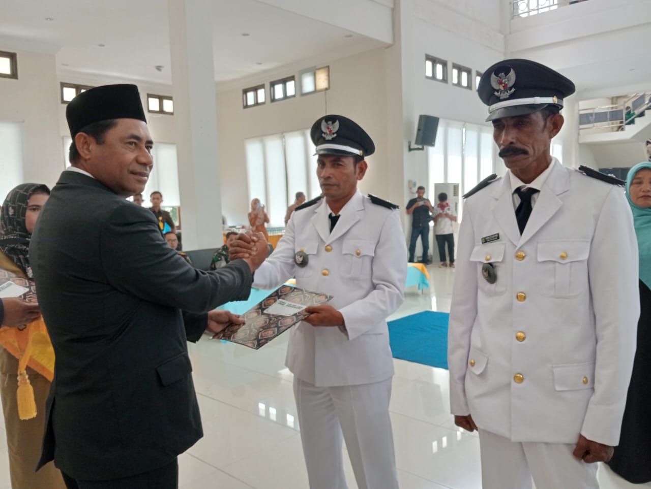 Tivanusantara – Bupati Halmahera Timur, Ubaid Yakub, mengukuhkan 85 kepala desa dan 510 anggota badan permusyawaratan desa (BPD), di aula kantor bupati, Selasa (30/7).