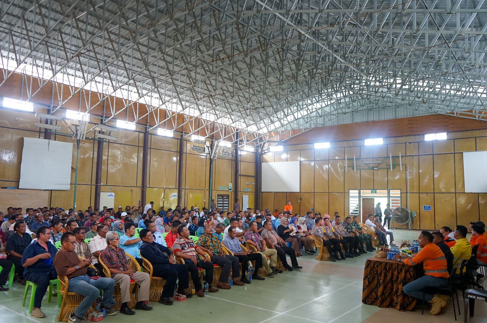 Haji Robert membuka pertemuan silaturahmi ini dengan mengucapkan terima kasih atas kesabaran, dukungan penuh dari masyarakat dan pemangku kepentingan di wilayah lingkar tambang terhadap operasional perusahaan yang penuh tantangan saat ini.