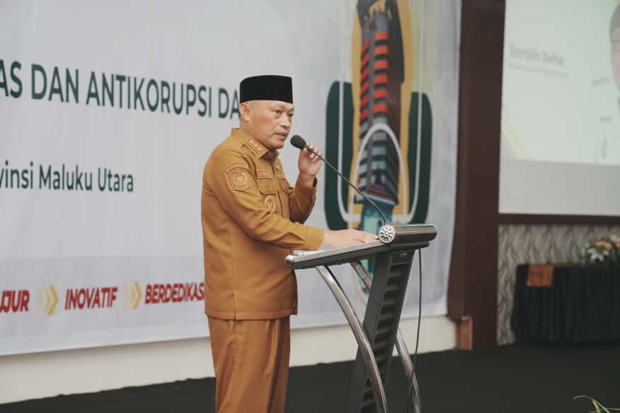 Tivanusantara – Wakil Gubernur Maluku Utara, Sarbin Sehe, membuka secara resmi Pelatihan Integritas dan Anti Korupsi Dasar (PERINTIS) tahun 2025 dan pengukuhan forum Penyuluh Antikorupsi (PAKSI) Malut, bertempat di Muara Hotel Ternate, Senin (29/9).