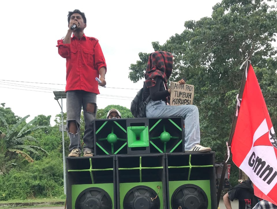 Aksi yang digelar ini untuk menuntut Wakil Bupati Rio Christian Pawane mundur dari pencalonan Ketua Umum Himpunan Pengusaha Muda Indonesia (HIPMI) Maluku Utara.