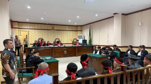 Tivanusantara – Putusan majelis hakim tingkat pertama Pengadilan Negeri Soasio, Kota Tidore Kepulauan pada Kamis (16/10) tadi, menyatakan sebelas warga Maba Sangaji terbukti secara sah dan meyakinkan melanggar Pasal 162 Undang-Undang Nomor 3 Tahun 2020 tentang Pertambangan Mineral dan Batubara (UU Minerba).