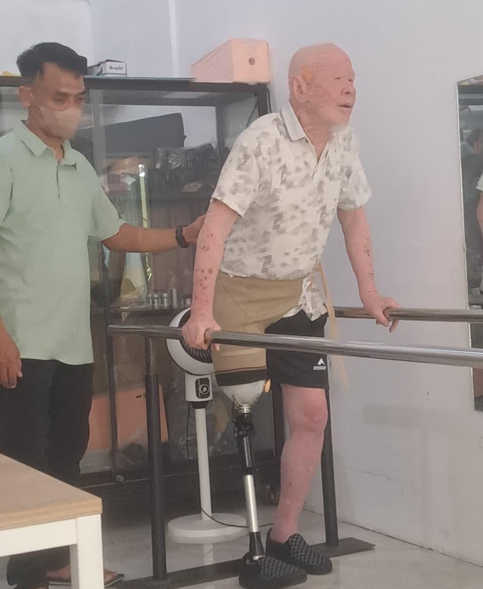 Proses penyerahan dimulai pada 2 September 2025, dan pemasangan serta pelatihan penggunaan kaki palsu selesai pada 27 Oktober 2025. Bantuan diserahkan langsung oleh dokter pendamping NHM Peduli, dr. Hi. Syamsul Bahri dengan pendampingan dari Indra Ismail (tim NHM Peduli). Bahan kaki palsu tersebut dikirim dari Jakarta, dengan proses finishing dan pelatihan pemakaian dilakukan di Klinik Orthotik Prostetik Manado.