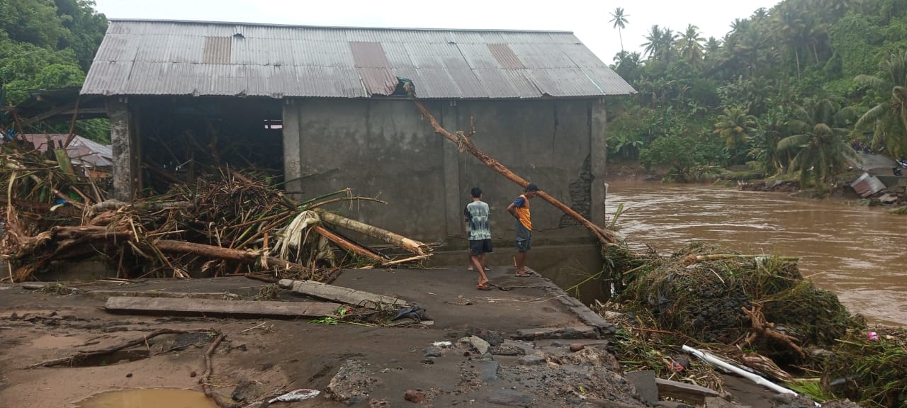 Fasilitas Umum: Satu unit Pasar Ikan di Kecamatan Ibu dilaporkan lenyap tersapu arus banjir yang kuat.