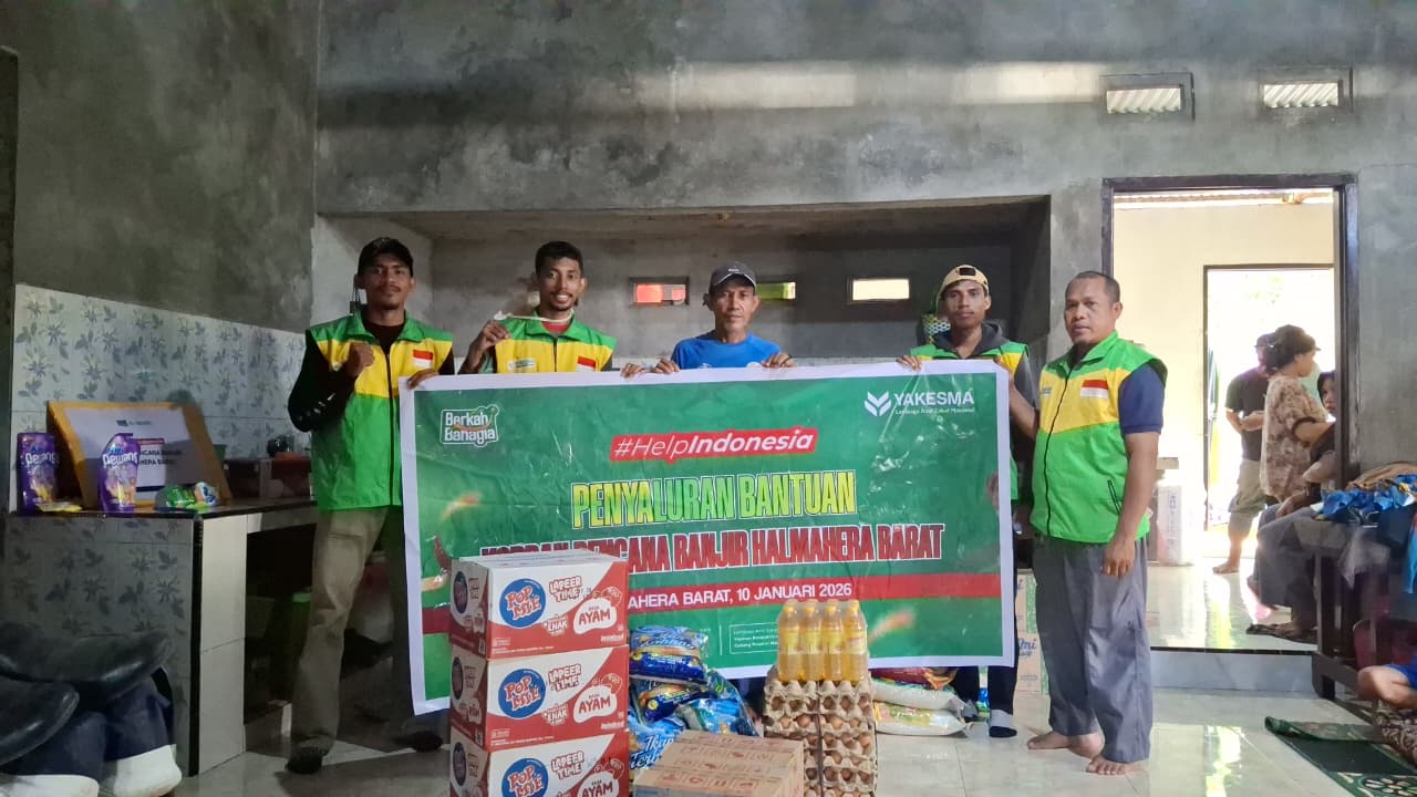 Tivanusantara – Lembaga Amil Zakat Nasional Yakesma Maluku Utara menyerahkan bantuan kepada warga terdampak bencana banjir di Kabupaten Halmahera Barat, Sabtu (10/1). Banjir tersebut dipicu curah hujan tinggi yang melanda wilayah Maluku Utara beberapa waktu lalu, termasuk di Halbar. Akibatnya, sejumlah rumah warga terendam banjir.