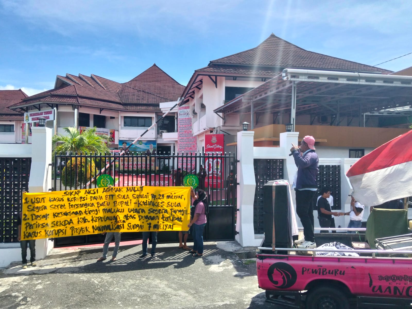 Tivanusantara – Tekanan publik terhadap Kejaksaan Tinggi (Kejati) Maluku Utara kian menguat untuk segera menetapkan tersangka baru dalam kasus dugaan korupsi Bantuan Tak Terduga (BTT) Kabupaten Kepulauan Sula senilai Rp28 miliar. Desakan itu muncul dalam aksi unjuk rasa Aliansi Gerakan Muda Anti Korupsi (AGMAK) Maluku Utara di depan kantor Kejati Malut, Selasa (3/2/2026), yang juga menyoroti dugaan keterlibatan Sekretaris Daerah (Sekda) Kepulauan Sula dalam kasus proyek normalisasi sungai.
