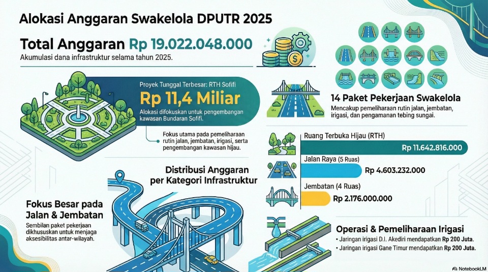 Anggaran jumbo tersebut tersebar dalam 14 item kegiatan, mulai dari pemeliharaan jalan dan jembatan, jaringan irigasi, hingga pengembangan Ruang Terbuka Hijau (RTH). Namun, pelaksanaannya diduga tidak sepenuhnya mengikuti ketentuan Peraturan LKPP Nomor 3 Tahun 2021 tentang Pedoman Swakelola.